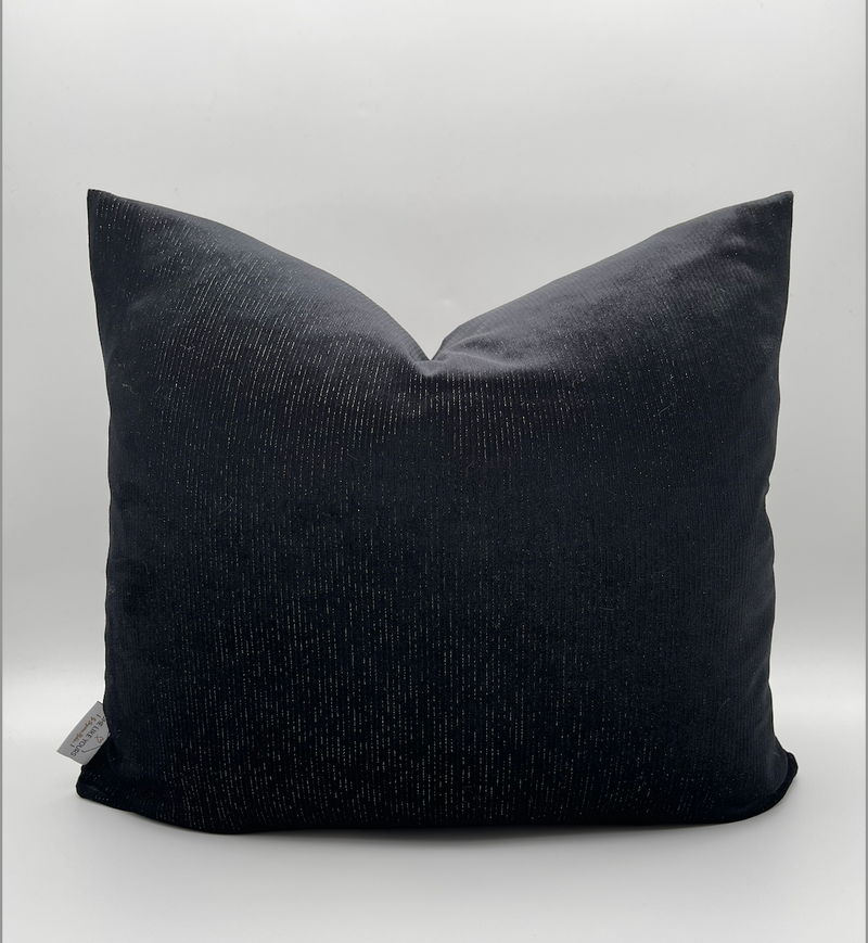Elevate your interior with this refined velvet cushion cover, crafted in luxurious black fabric adorned with delicate gold and silver threading.